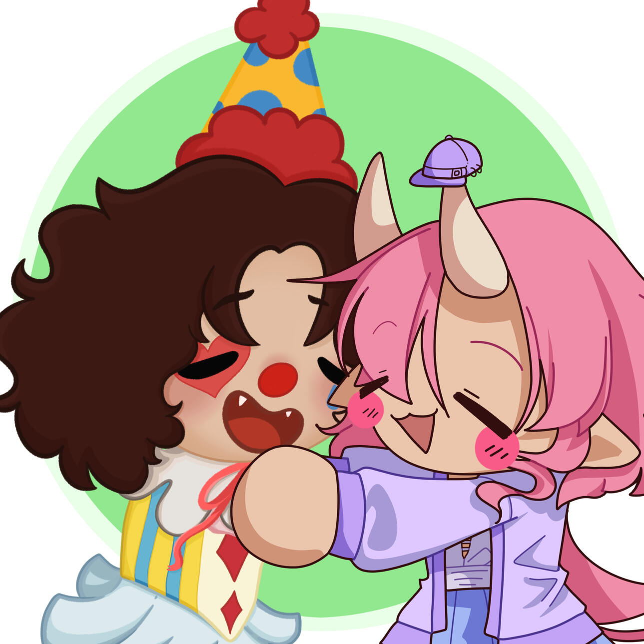 We are Fuchsia Neoma and Peachisu, and together we make Fuchsia Peaches, an art-based small business located in Ontario! The two of us collaborate with different art styles selling handmade stickers, prints, charms, jewelry and much more!